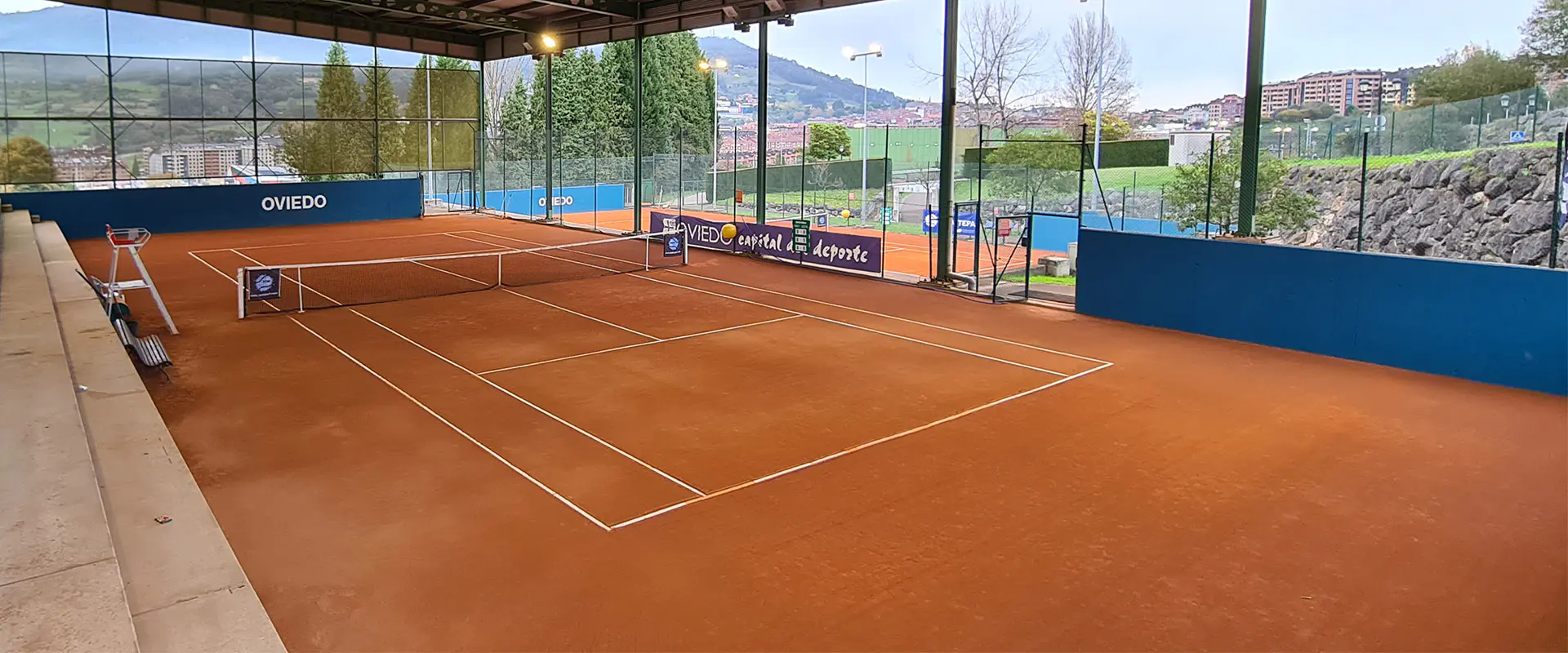 4 pistas descubiertas de tierra batida: 18,35 m x 36,60 m.